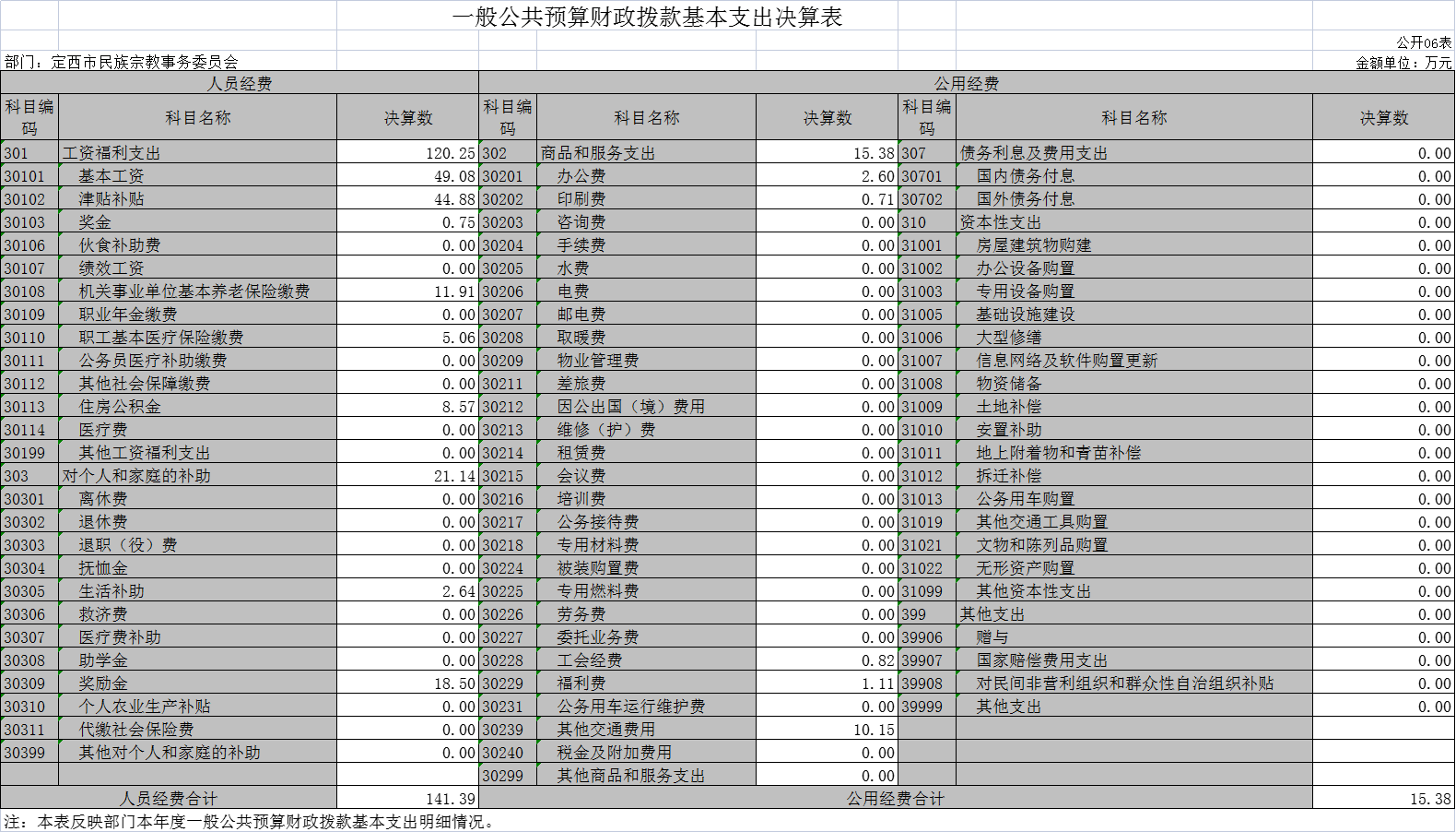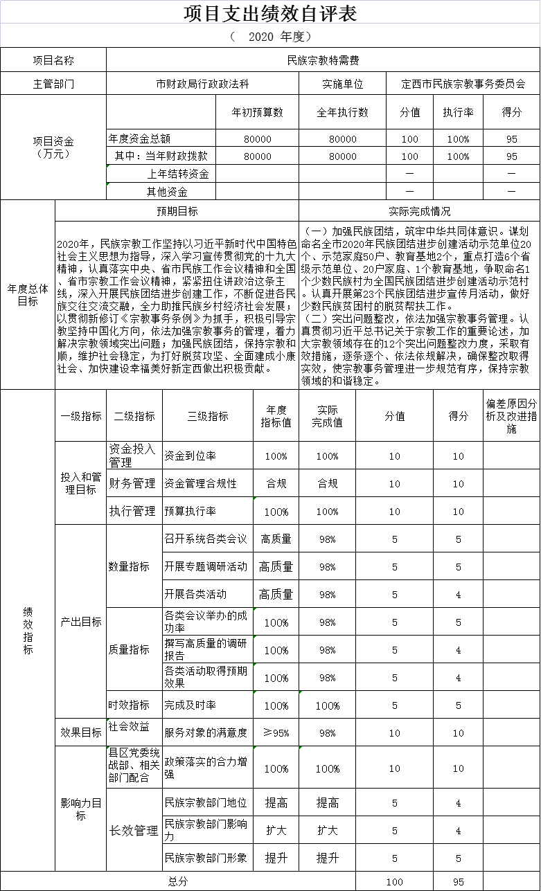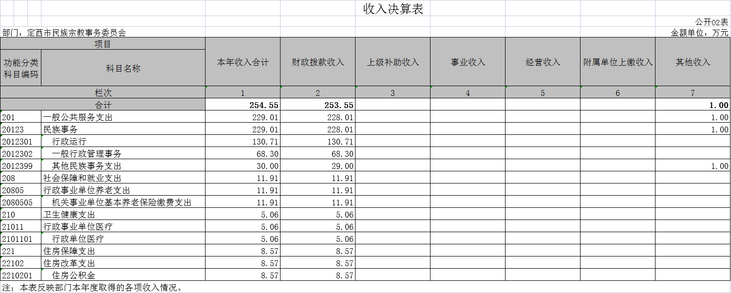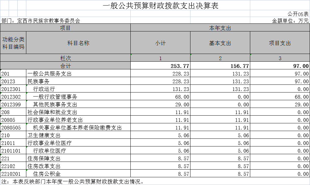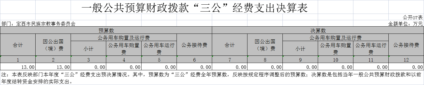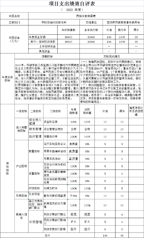 定西市民族宗教事务委员会2020年度部门决算公开说明 |